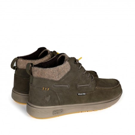 Elegante bota estilo náutico Kent de Walk in Pitas para hombre. Este modelo está fabricado en serraje y cuenta con cordón elástico autoajustable. El resultado es una bota flexible, cálida, cómoda y muy ligera.
