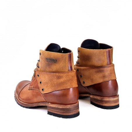 Botín de Sendra de cordón para hombre, fabricado en piel marrón y doble capa reversible en la caña, que permite colocarlo en dos posiciones, haciendo tan especial a este botín.