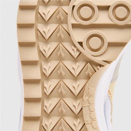 La zapatilla Jolly se inspira en su origen en la silueta del catálogo Diadora 1981 y mantiene su suela icónica, añadiendo detalles modernos que la transforman, manteniendo el ADN deportivo y siguiendo las tendencias más actuales.