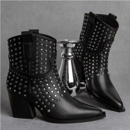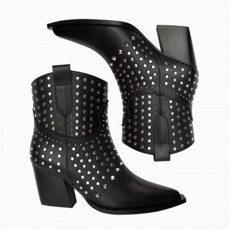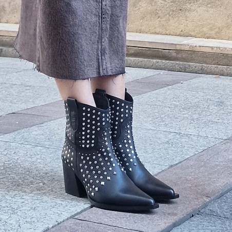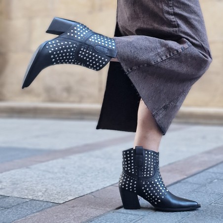 Botín de Vienty tacón tachuelas piel negro Given 13154