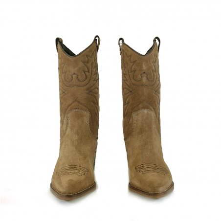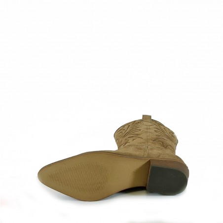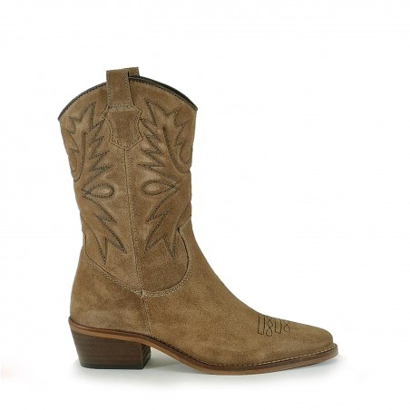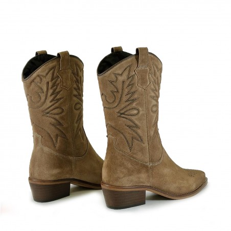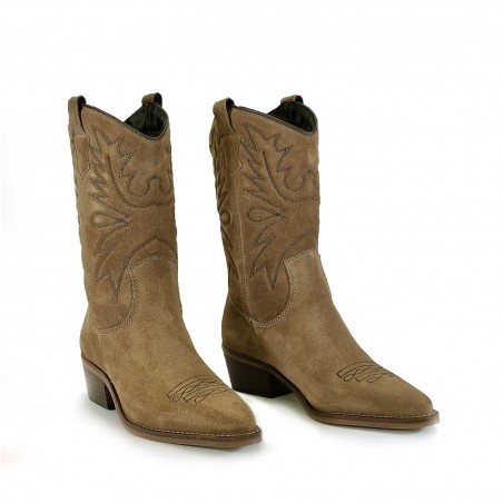 Bota para mujer estilo cowboy de la marca española VEXED/LOL, fabricada en piel de serraje color taupe de primera calidad.