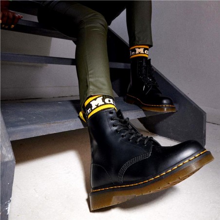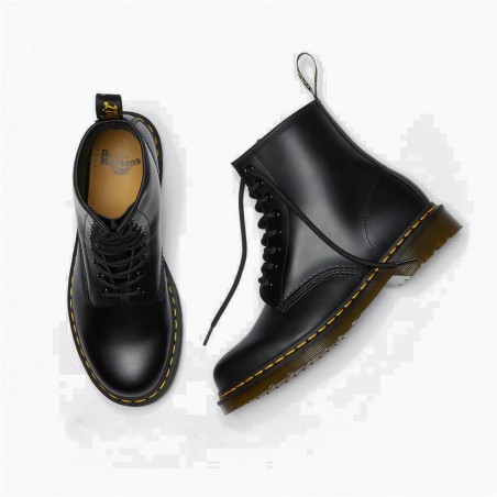 La bota 1460 es la bota original de Dr. Martens. Su diseño es inconfundible: 8 ojales, el emblemático cuero suave Smooth de Dr. Martens, la suela con cámara de aire y surcos laterales y el pespunte amarillo.