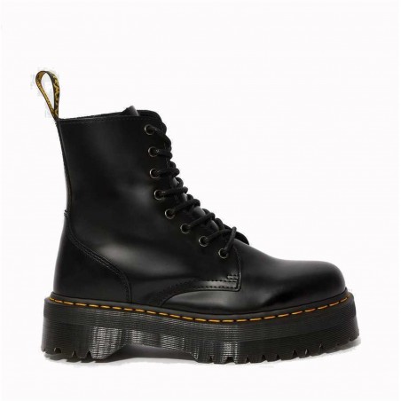 Jadon es la evolución natural de la bota de 8 ojales. Un modelo con plataforma extragruesa que conserva todos los detales originales de las botas Dr. Martens: desde la suela con surcos laterales al pespunte amarillo, pasando por el emblemático tirador con el logo.