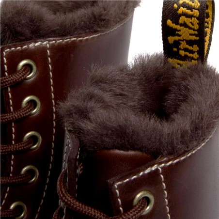 Máximo confort en los días más fríos con esta resitente bota 1460 Serena de piel marrón con forro sintético.