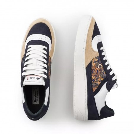 • Fabricadas en serrajes azul marin y beige, así como napa color blanco