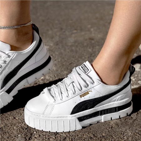 Las hemos creado para las chicas de la calle, los entusiastas de la calle y los expertos en tendencias, básicamente para aquellos que quieren destacar con una sofisticada arrogancia. Tomando elementos de diseño del entorno urbano e inyectándoles un toque extra, las Mayze engloban actitud. Con una parte superior de lujosa piel, elegantes superposiciones de ante, llamativos contrastes de color y una suela muy marcada, estas zapatillas deportivas que marcan tendencia serán la envidia de todos los que las vean.