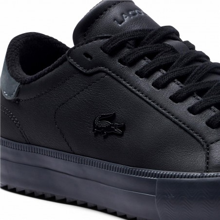Las zapatillas Powercourt de Lacoste de piel están diseñadas con una mezcla de diferentes pieles y una suela vulcanizada gruesa, totalmente negras que las hacen muy versátiles y elegantes para combinar con tus looks más deportivos y formales.